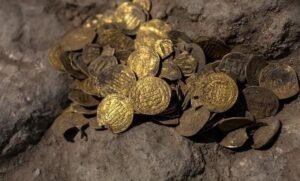 وبعد الحفر ظهر وعاء فخاري مختوم يحتوي عملات ورسالة على جلد غزال
